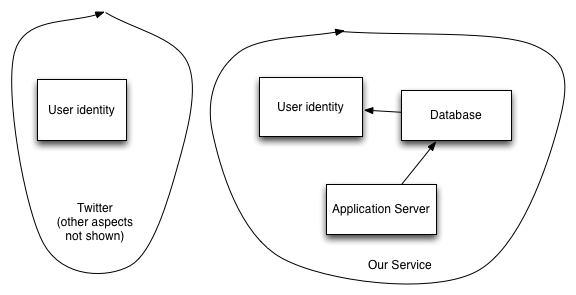 We can minimize the effects (or reterritorialize our service) by making sure to have our own concept of identity within the system, and making sure that we have our own notion of identity within the system, and just connecting Twitter’s notion of identity to our own: