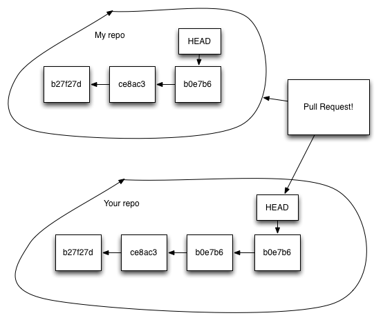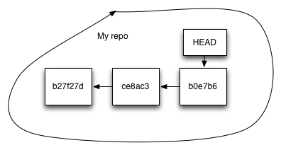 Every GitHub pull request is an act of deterritorialization, and every merge is one of re-territorialization. Consider this small repository, with three commits: